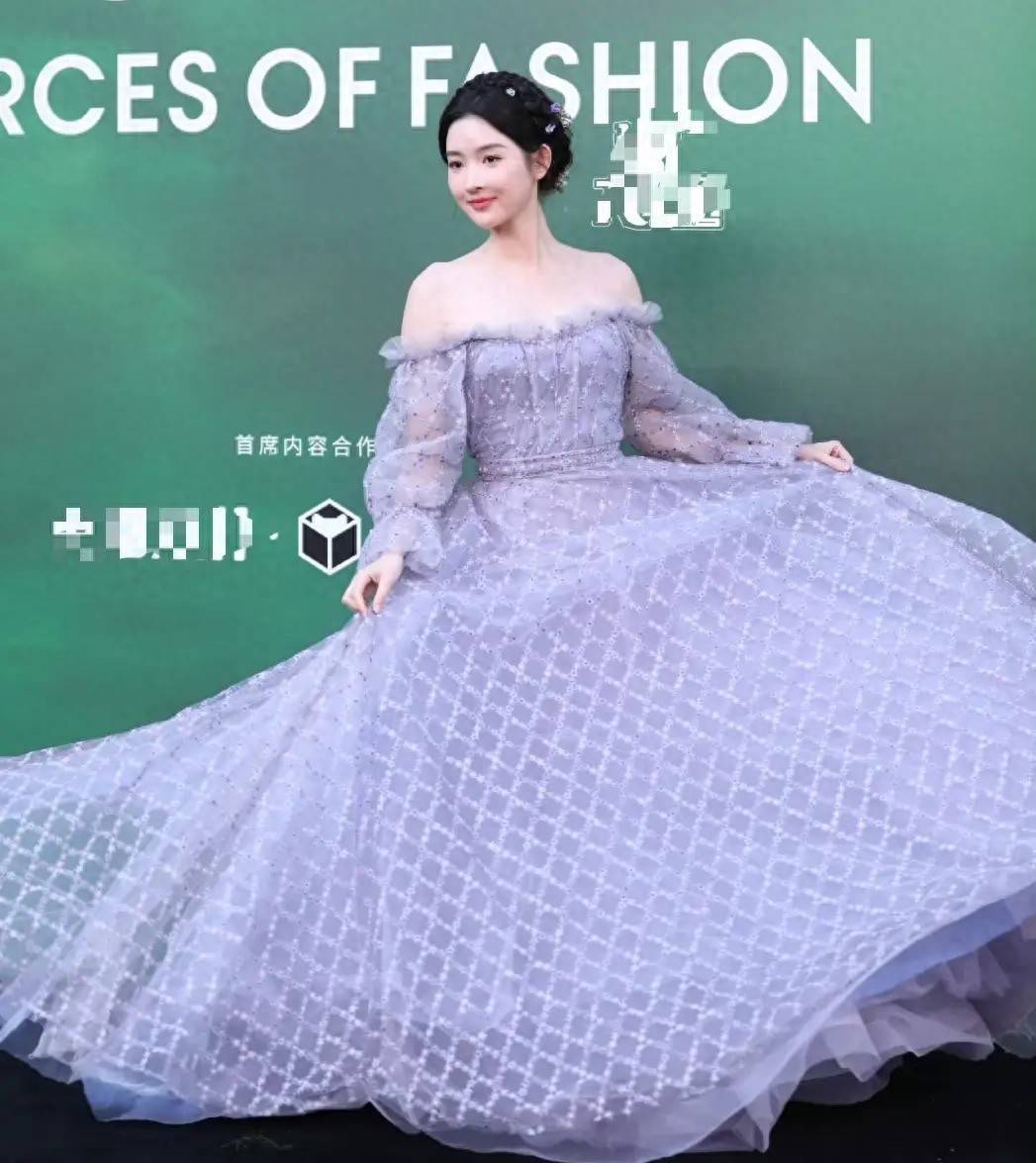 小美女“王钰雯”穿薰衣草紫的一字肩长裙,有种用力过猛的感觉,很夸张。长得本就显老、偏要穿很嫩的衣服,反差对比太明显。