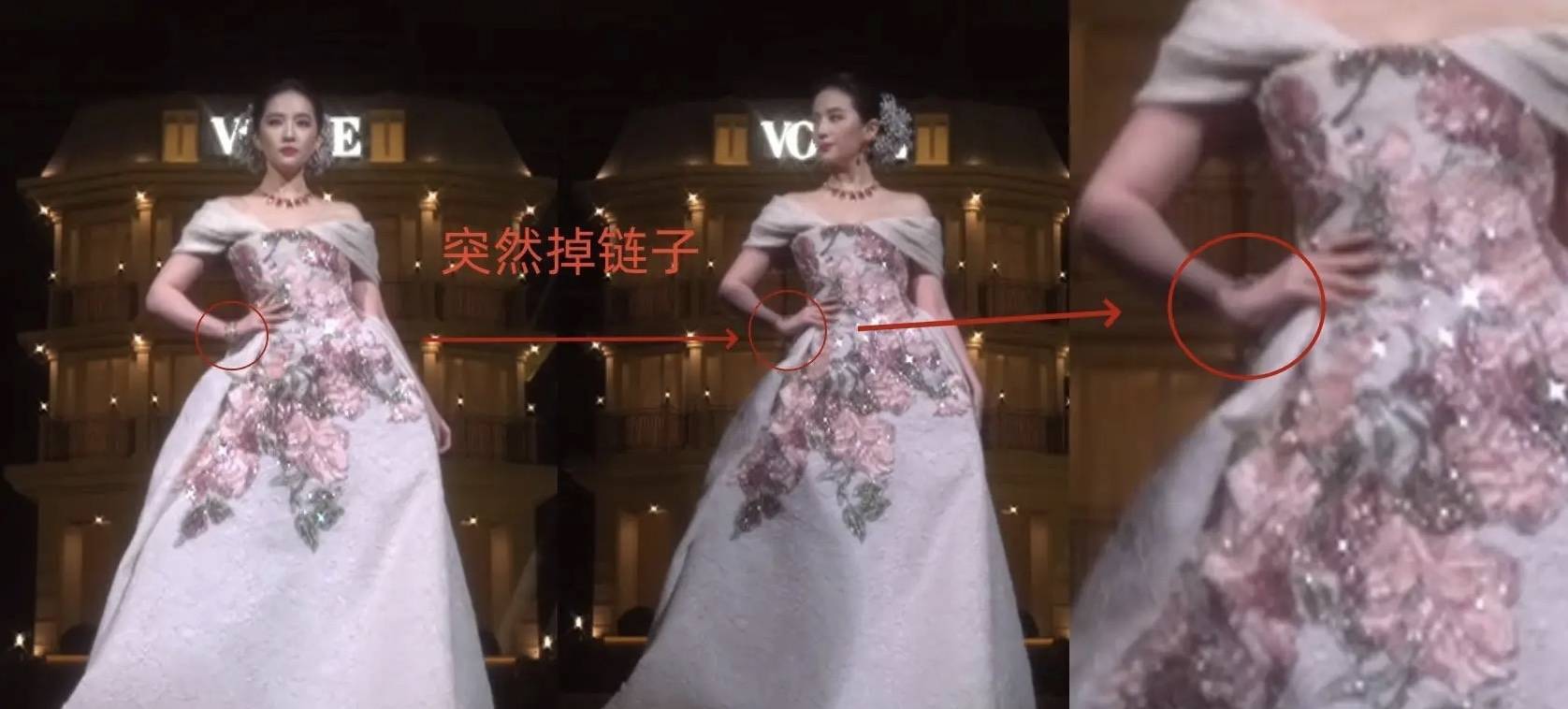 这场红毯晚会,刘亦菲带了价值700万以上的宝格丽卢比来高珠,谁能想到这么贵的镯子当场“掉链子”。