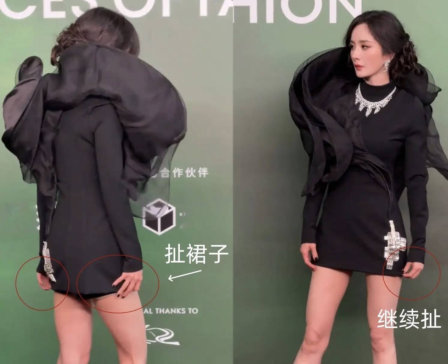 话说回来,杨幂这条裙子可真是足够短。在走红毯的时候,总是情不自禁的去“扯裙摆”,生怕走光了一样。